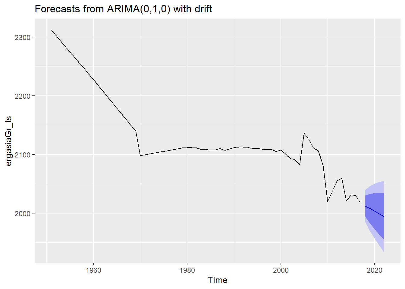 ergasiaGr <- workingHours[workingHours$Code == "GRC", 4]Πρόβλεψη χρονοσειρών με μοντέλα ARIMA