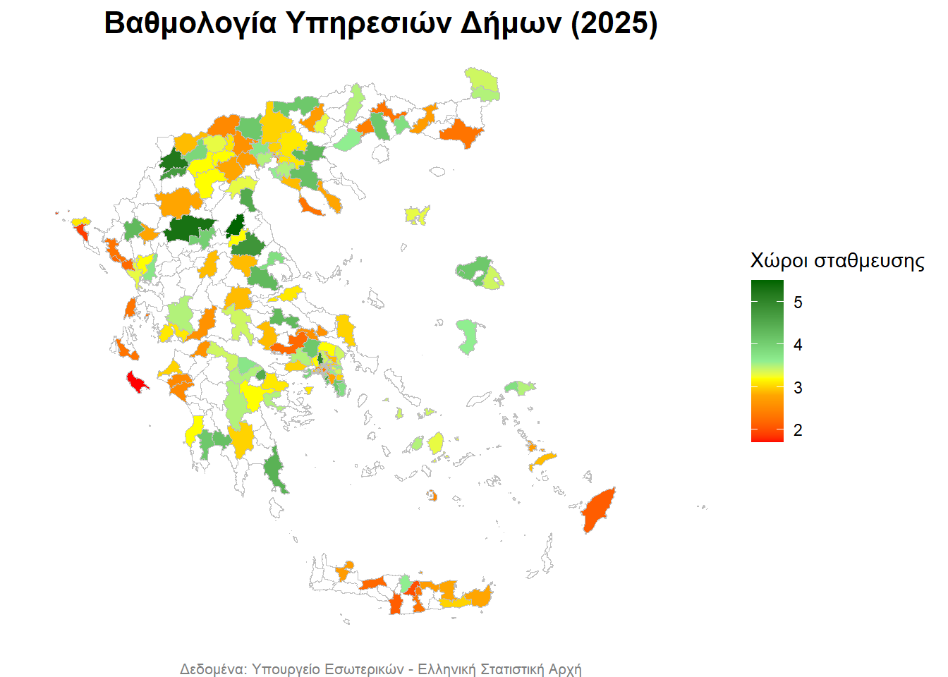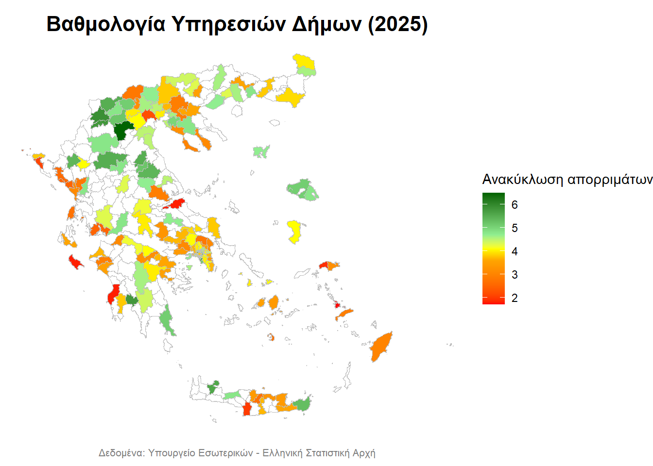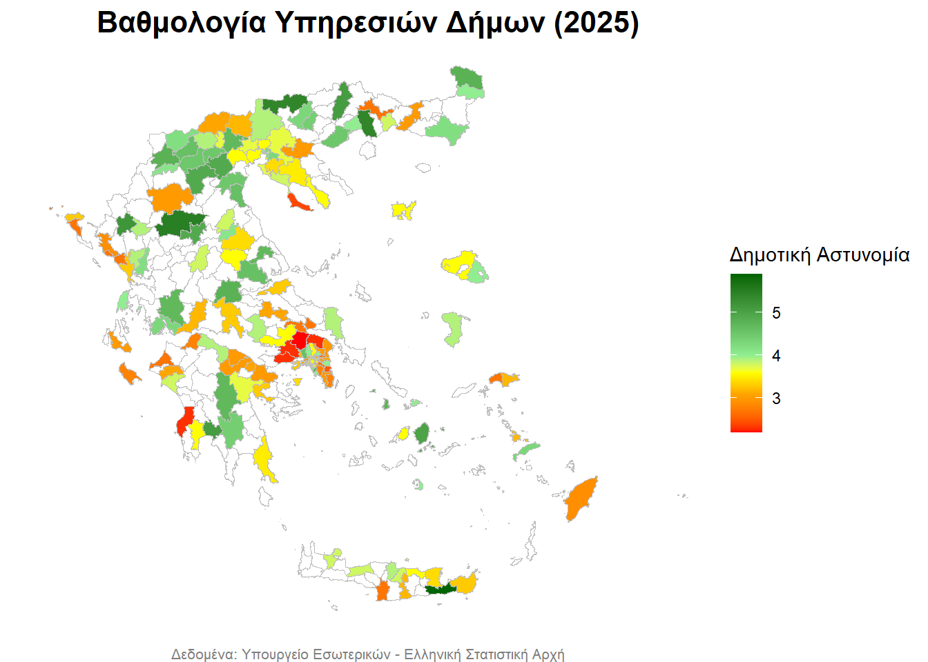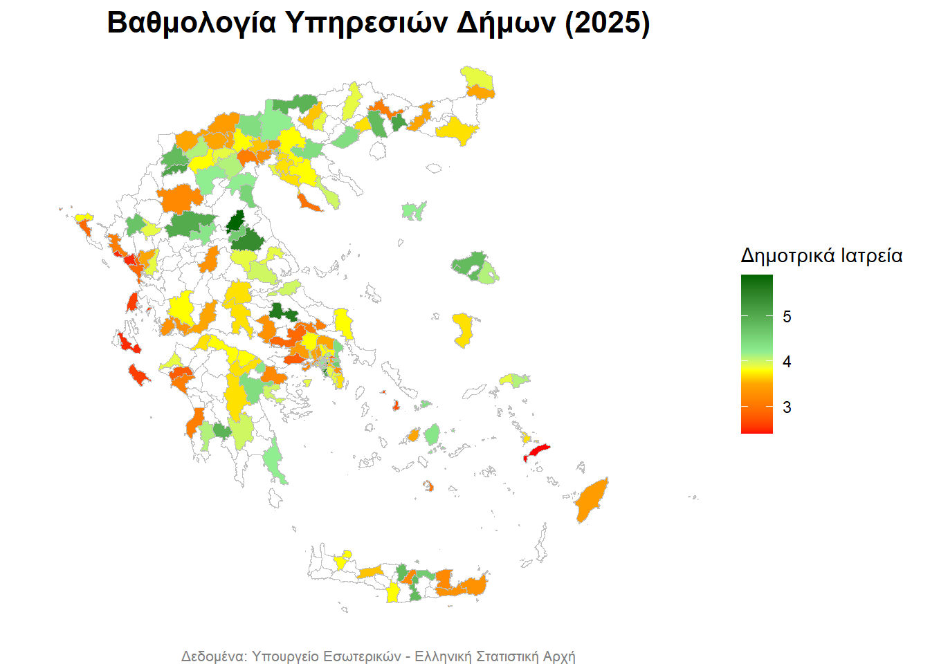 - με λευκό απεικονίζονται οι Δήμοι, για τους οποίους δεν υπάρχουν δεδομένα,