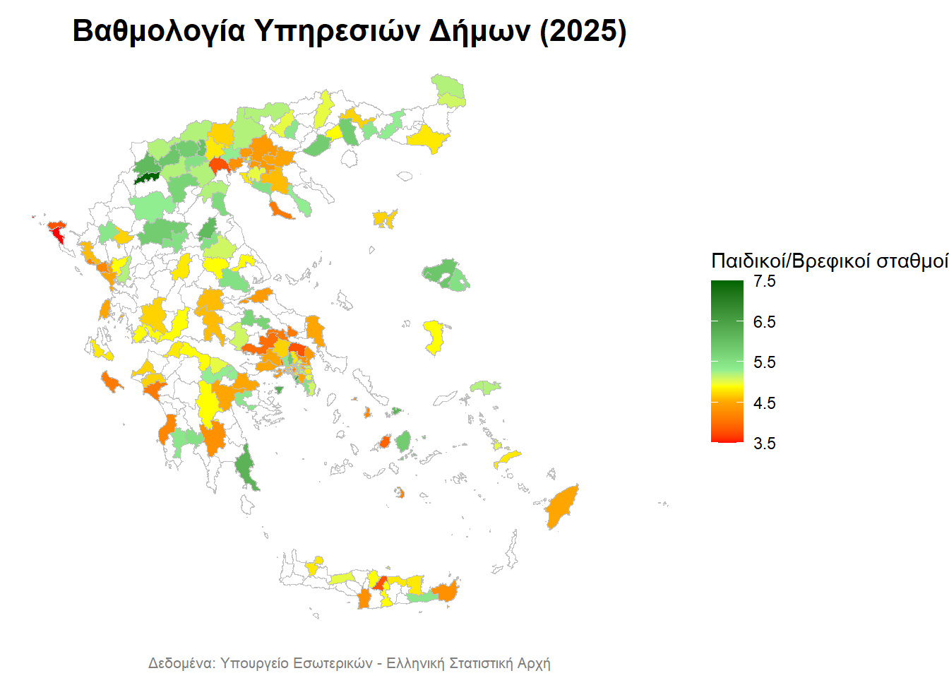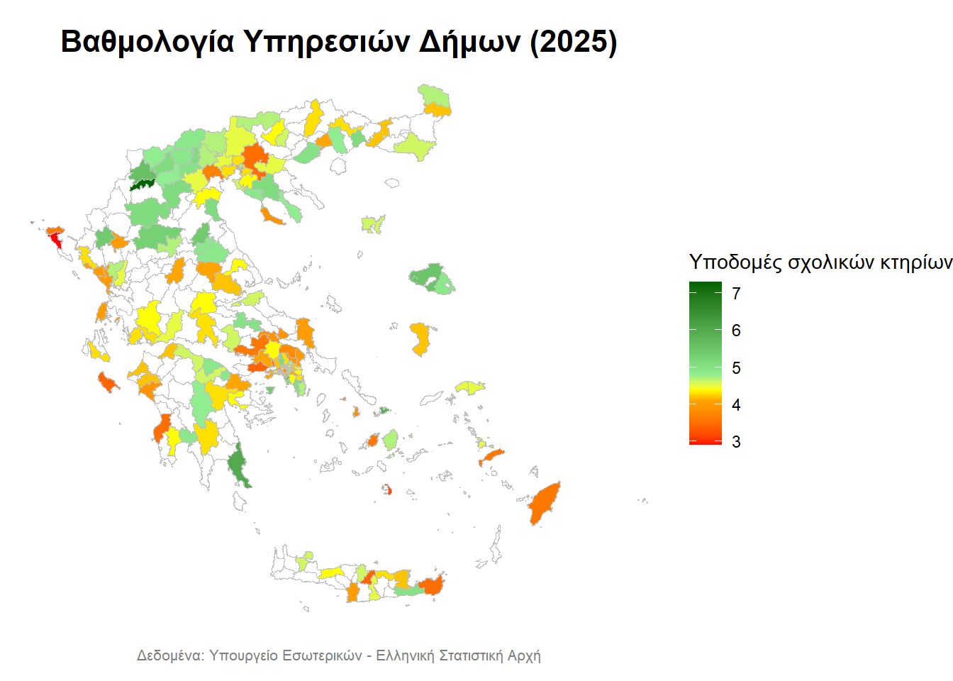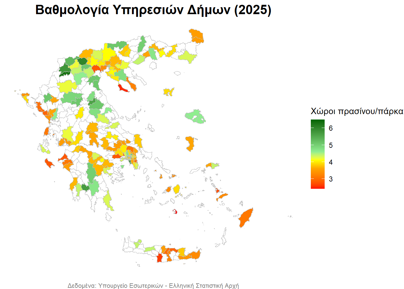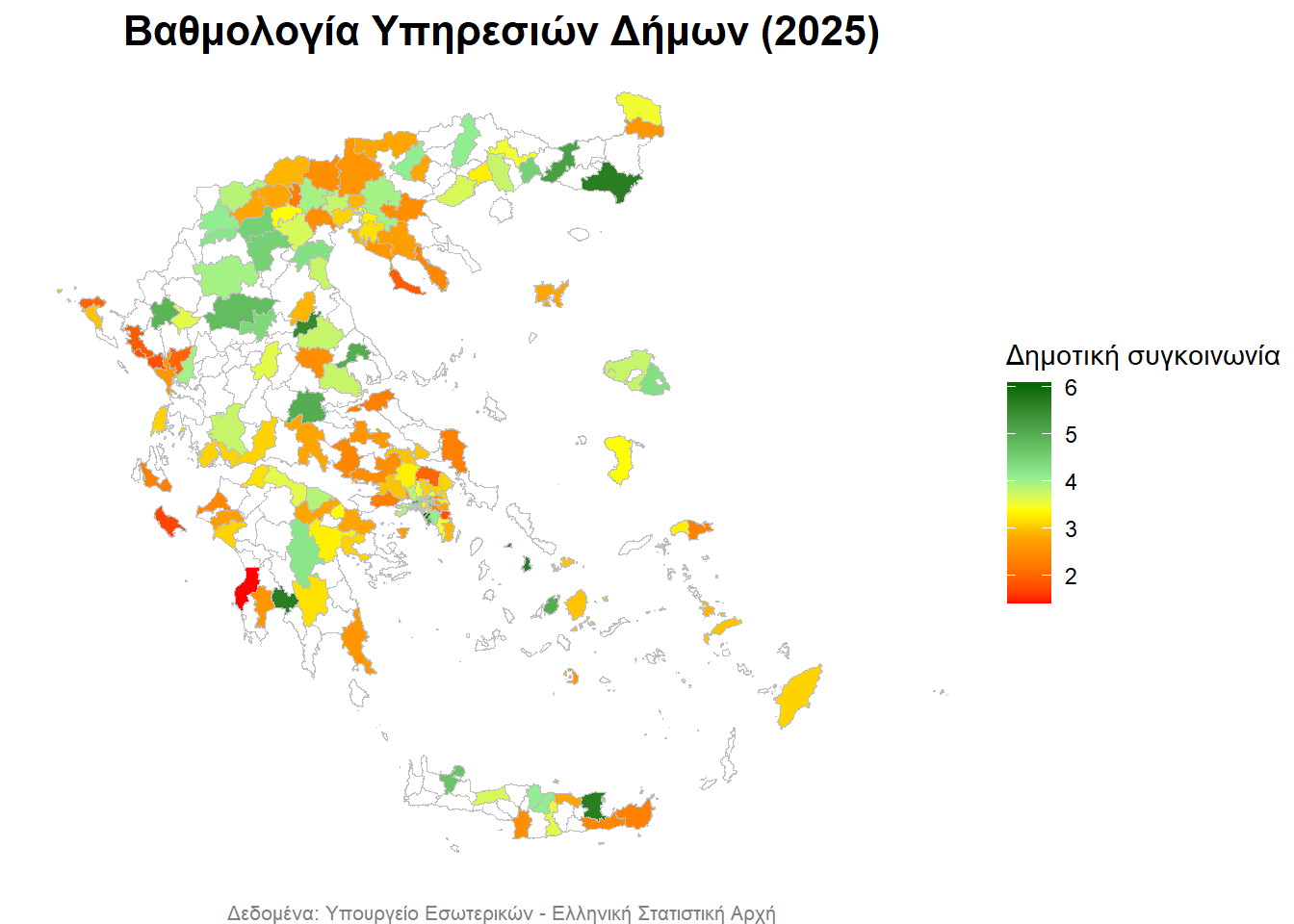 - με λευκό απεικονίζονται οι Δήμοι, για τους οποίους δεν υπάρχουν δεδομένα,