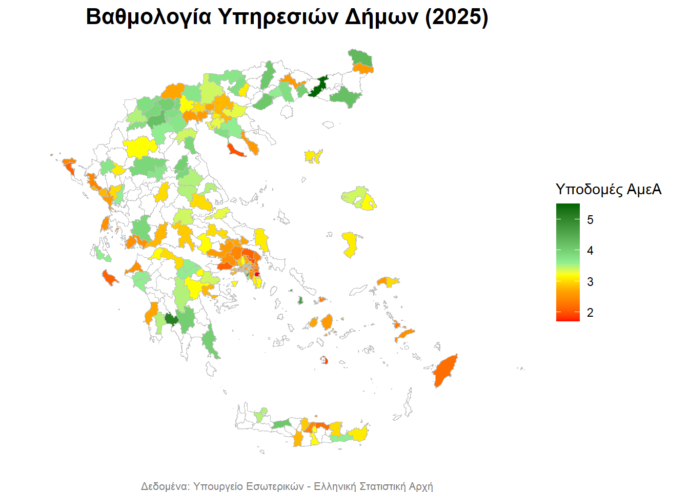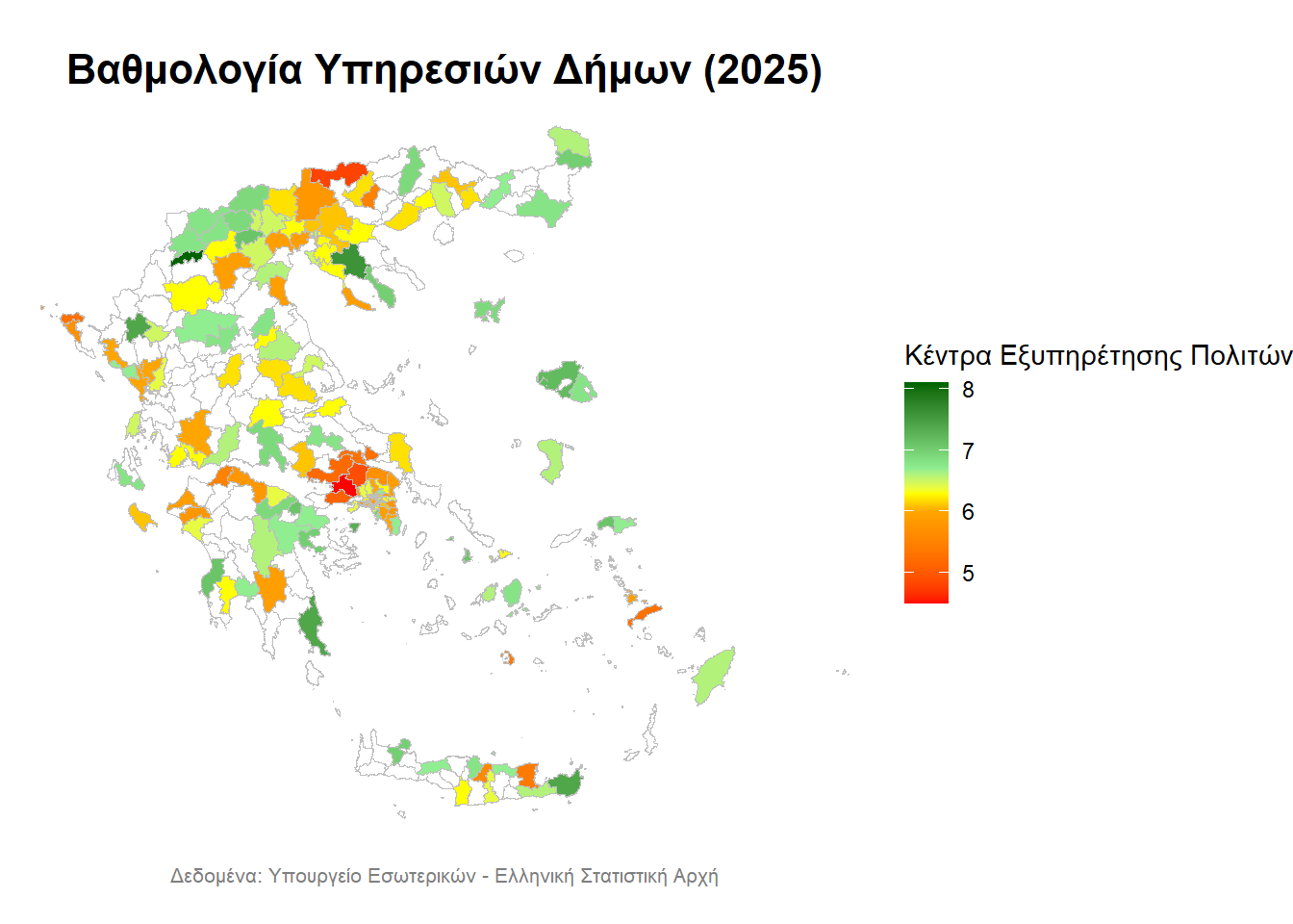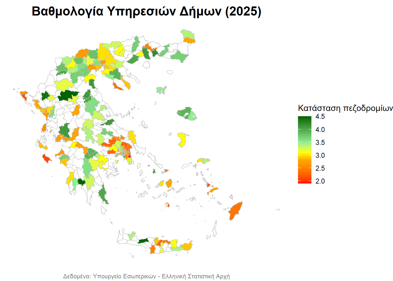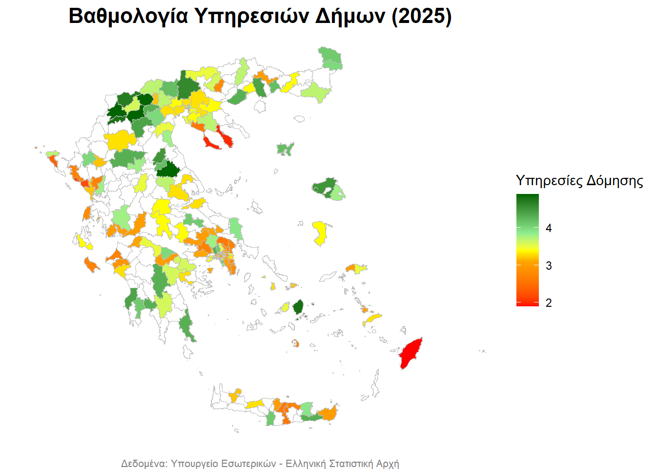 - με λευκό απεικονίζονται οι Δήμοι, για τους οποίους δεν υπάρχουν δεδομένα,