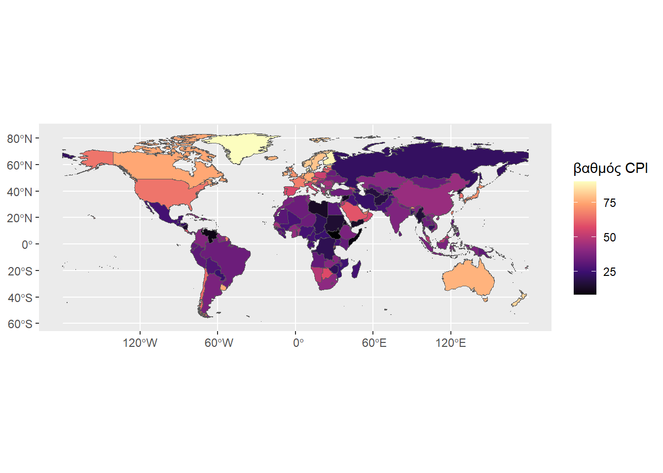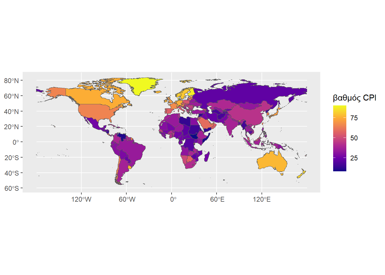 title = "Βαθμολογία CPI χωρών",