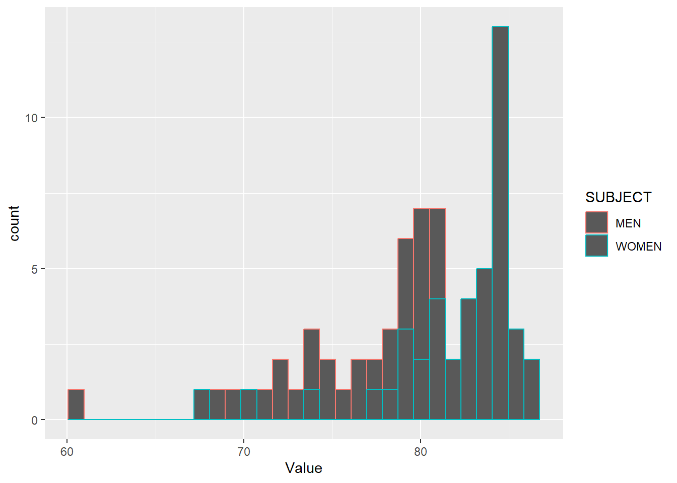 Στην περίπτωση που επιδιώκουμε ένα ιστόγραμμα ξεχωριστό για τους άνδρες κι ένα ξεχωριστό για τις γυναίκες, τα οποία όμως να συνυπάρχουν γράφουμε: