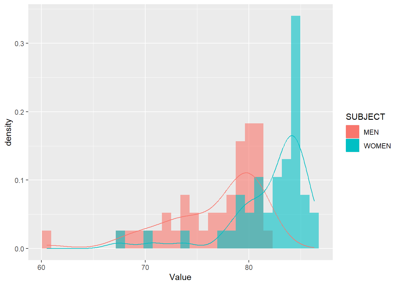 LifeExpectancyBirth[LifeExpectancyBirth$TIME==2018 & LifeExpectancyBirth$SUBJECT!="TOT", c("LOCATION","SUBJECT","Value")]