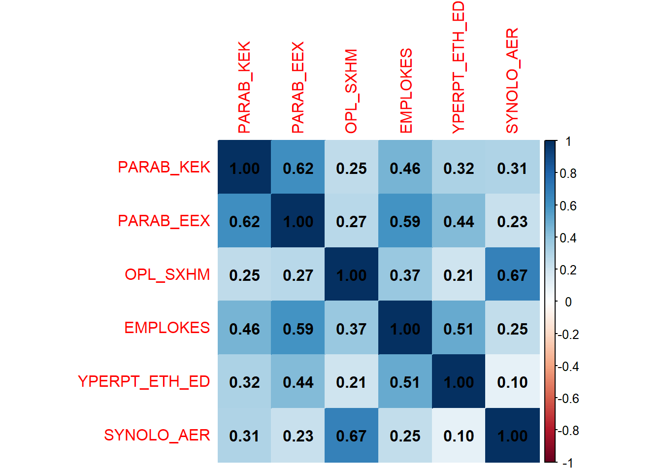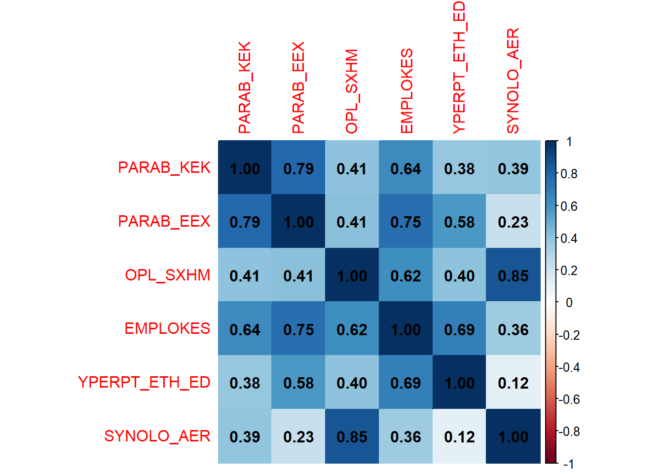 pinakas_sysxetisis(enaerParab[,3:8], "kendall")
