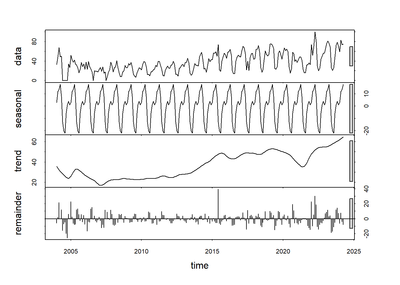 gamoiSynolo <- gamoi$GamoiSynoloΜελέτη εποχικότητας