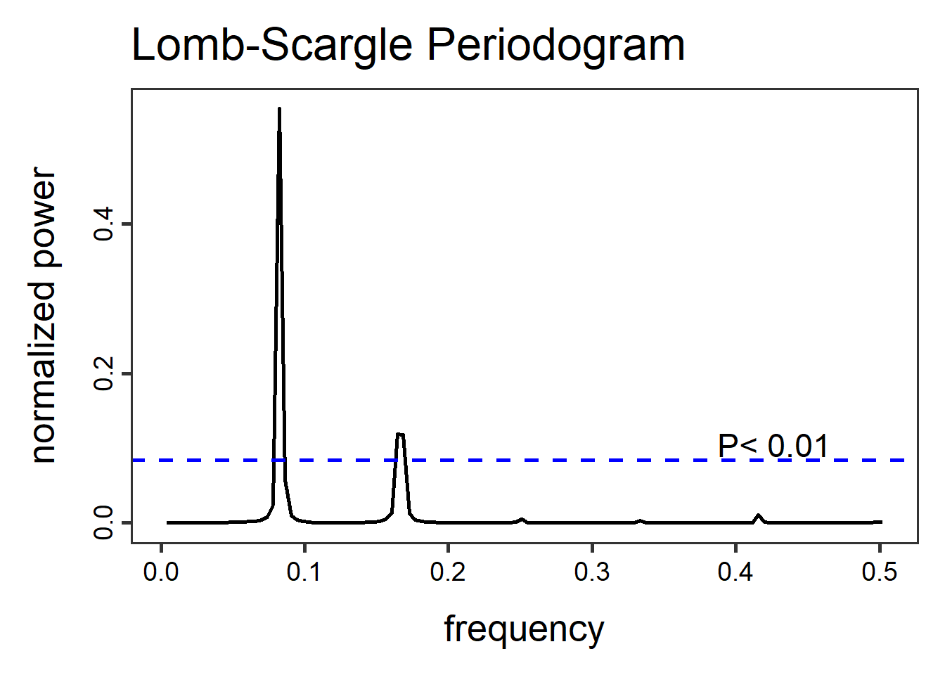 Τα NA δηλώνουν ότι δεν έχουμε επαρκή δεδομένα για να συμπεριλάβουμε τους όρους \(\sin\left(\frac{2\pi}{4}t\right)\) και \(\cos\left(\frac{2\pi}{4}t\right)\) μαζί με τους άλλους. Γράφουμε:
