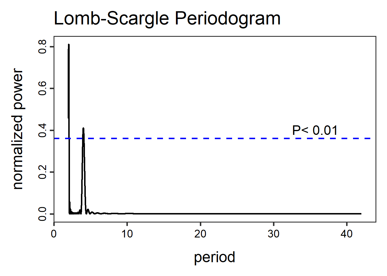 Βλέπουμε πως η ισχυρότερη δύναμη είναι αυτή που επιβάλλει ταλάντωση 2 χρονικών μονάδων. Επειδή όμως είδαμε από το περιοδόγραμμα και κάποιες άλλες περιόδους, θα το ψάξουμε λίγο βαθύτερα:
