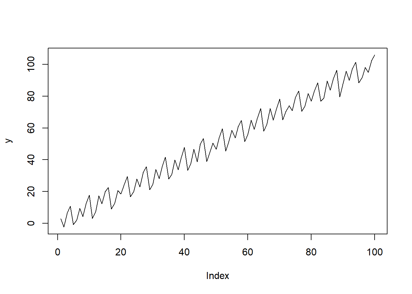y <- x+6*sin( (2*pi/3) * x)-4*cos( (2*pi/6) * x)+rnorm(100)