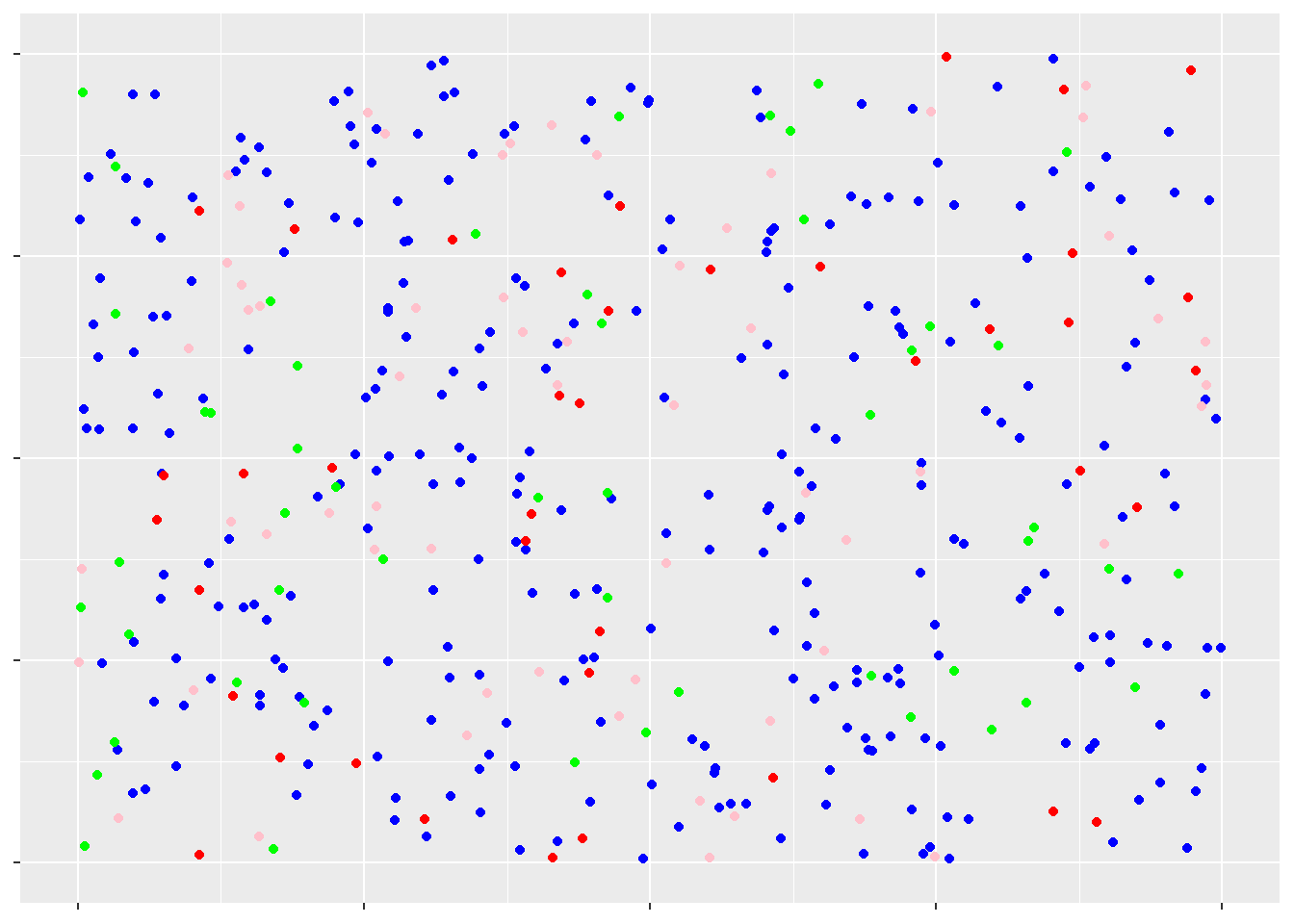Αντίθετα, στο παρακάτω σωματείο φαίνεται να υπάρχει μικρότερη ποικιλία απόψεων. Σε αυτό παραβρίσκονται 290 άτομα που πρόσκεινται στη ΝΔ (μπλε), 60 άτομα που πρόσκεινται στον ΣΥΡΙΖΑ (ροζ), 50 άτομα στο ΠΑΣΟΚ (πράσινο) και 40 στο ΚΚΕ (κόκκινο).