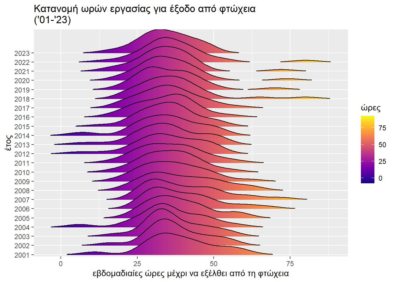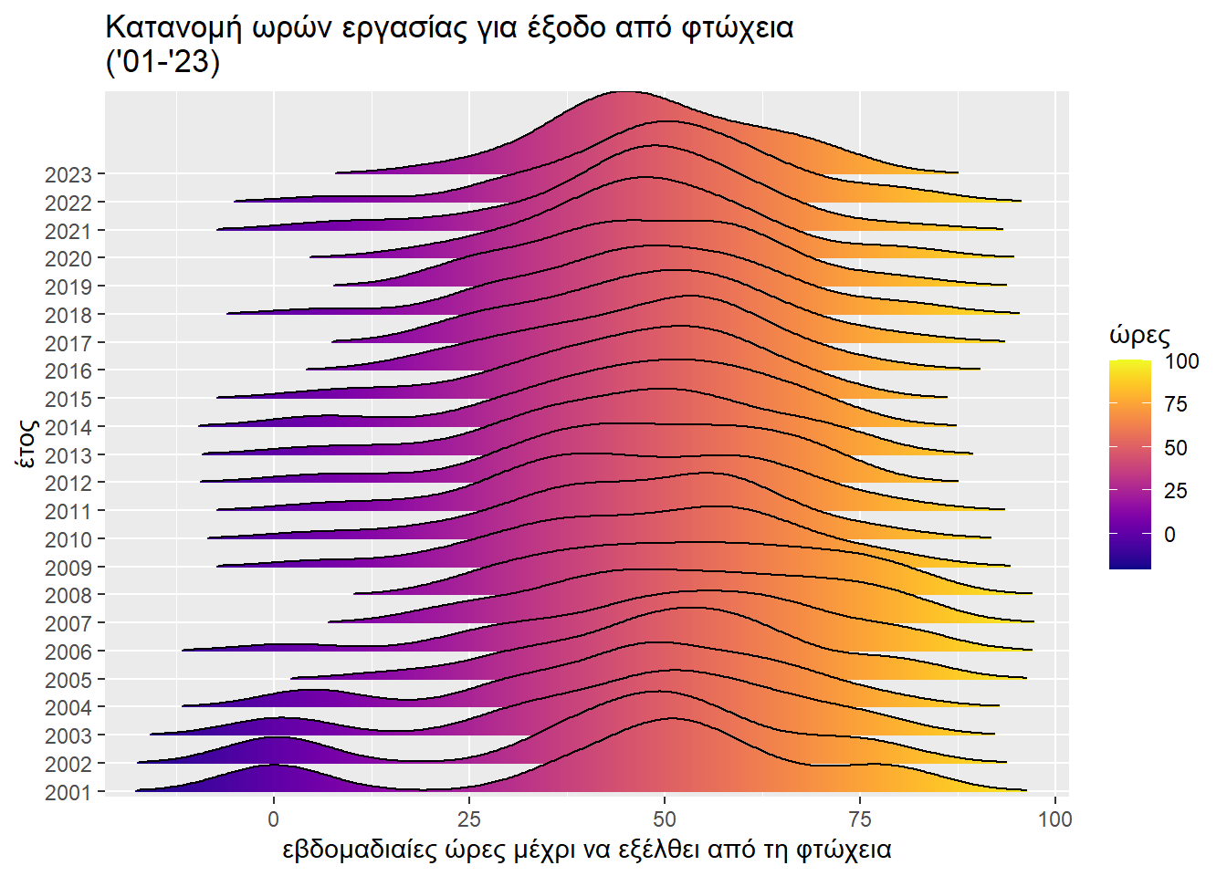 Ακολουθεί για άλλη μια φορά η οπτική αναπαράσταση της εξέλιξης στο χρόνο του ζητήματος που μελετάμε.