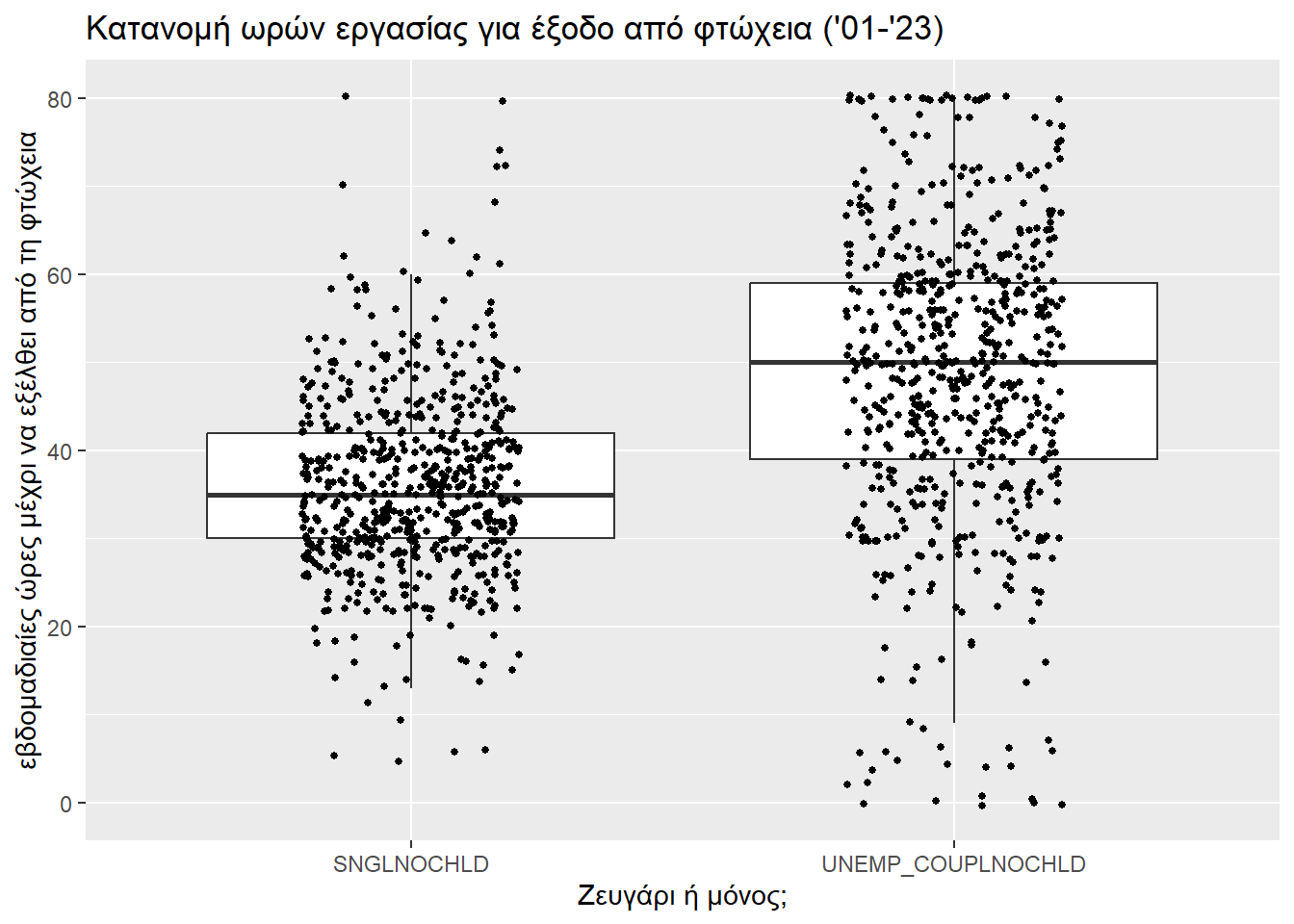 Φαίνεται πως ένα ζευγάρι χρειάζεται περισσότερες ώρες εργασίας για να βγει από την κατάσταση της φτώχειας. Να δούμε τι έχει να πει γι’ αυτό κι ένας έλεγχος Wilcoxon.